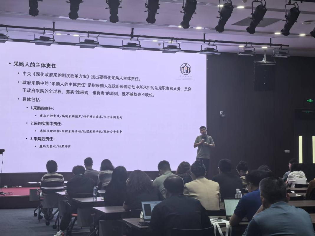 雷金辉老师为大家带来了近三个小时的“政府采购实务分享”专题讲座。雷老师从国家采购法律法规体系出发,紧密结合高校采购特点,系统梳理了从采购需求提出、意向公开、方式选择、合同签订到履约验收的全流程规范。他不仅详细解读了国家最新采购法规政策,还通过剖析高校采购领域的典型争议案例,深刻揭示了采购各环节中潜在的廉政风险与合规陷阱,并提供了切实可行的风险防范策略与解决方案。雷老师的讲授高屋建瓴、内容翔实、逻辑严密,既有理论高度,又有实践深度,为参训人员厘清了采购业务中的诸多模糊地带,为后续规范、高效地开展采购活动奠定了坚实基础,赢得了在场学员的阵阵掌声。